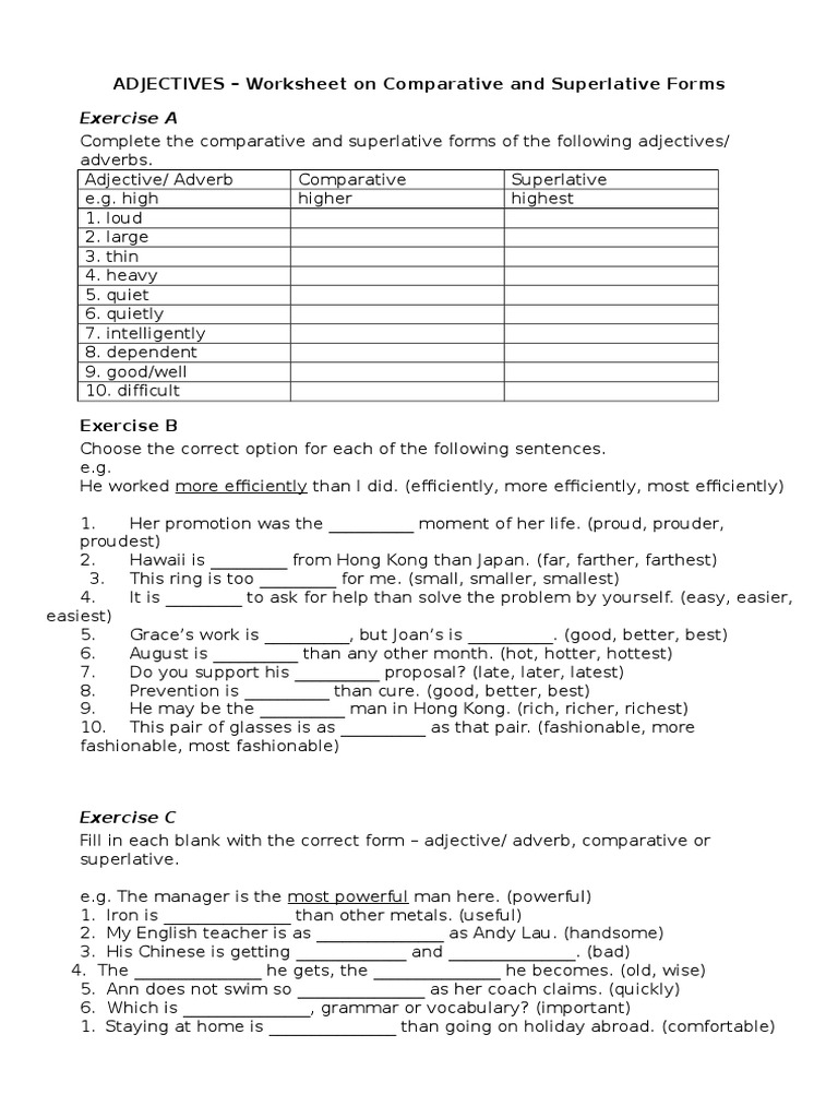 Comparative And Superlative Adjectives And Adverbs Worksheet